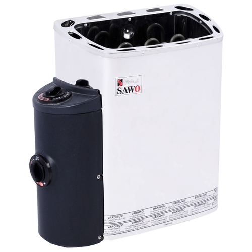 Себе же сделал сауну электрическую на основе печи Sawo, надежный и известный финский производитель. Питание 380в, мощность 9кВт. При покупке посоветовали брать именно эту на мою площадь сауны- 11 кубических метров. Учитывая наличие Солнечных батарей на крыше не так уж много.