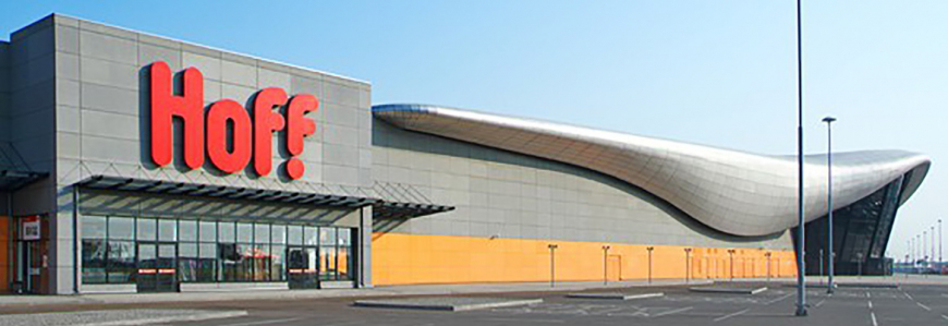 - В настоящее время сеть насчитывает 52 магазина. Из них один в Smart-формате, 33 гипермаркета, 15 Hoff Home и 3 Hoff Mini. Hoff есть в таких крупных городах, как Москва, Санкт-Петербург, Екатеринбург, Казань и т. д.